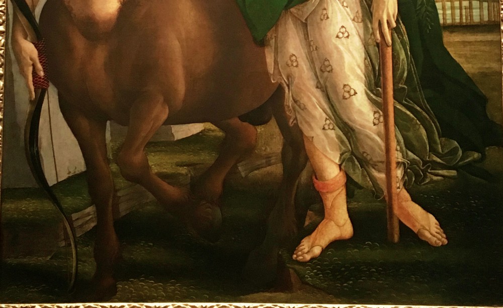 She is turned towards him so that we can see a three-quarter profile, and the Centaur's contorted face is in full view.