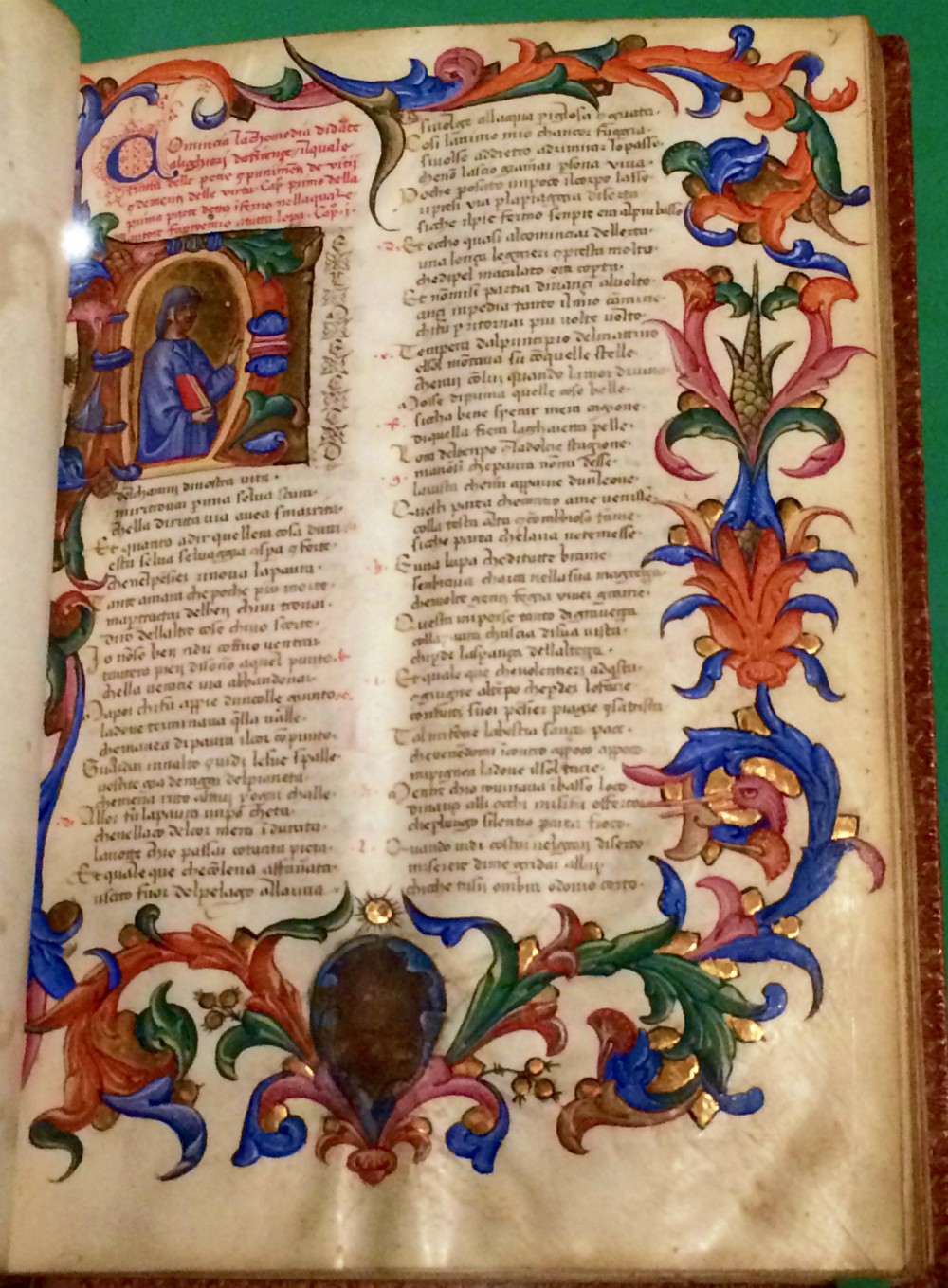 One spot, was of course, the Gardner Museum — showcasing lovely humanist manuscripts by the Tre Corone (Three Crowns of Italian literature — Giovanni Boccaccio, Dante Aligheri, Francesco Petrarca).