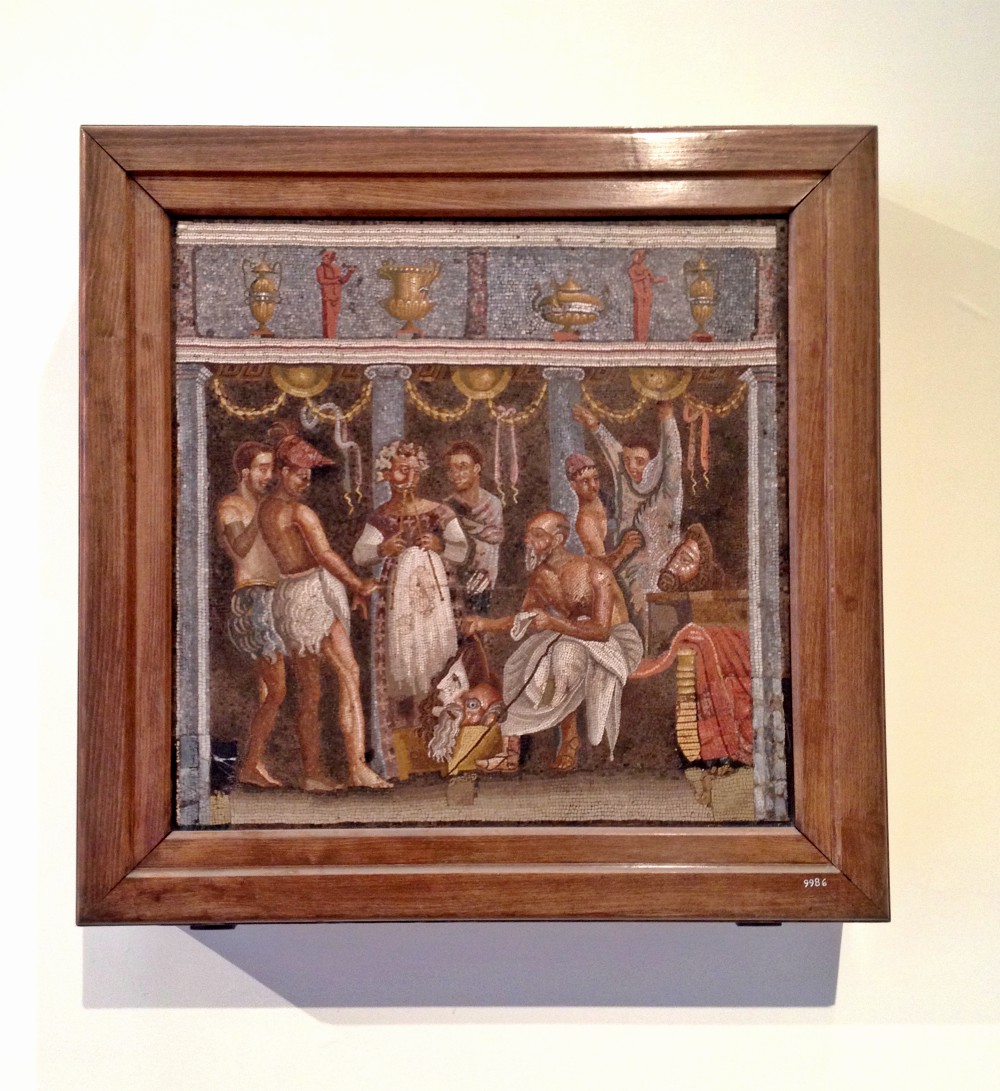 Bath mosaic in brothel at the entrance to Pompeii