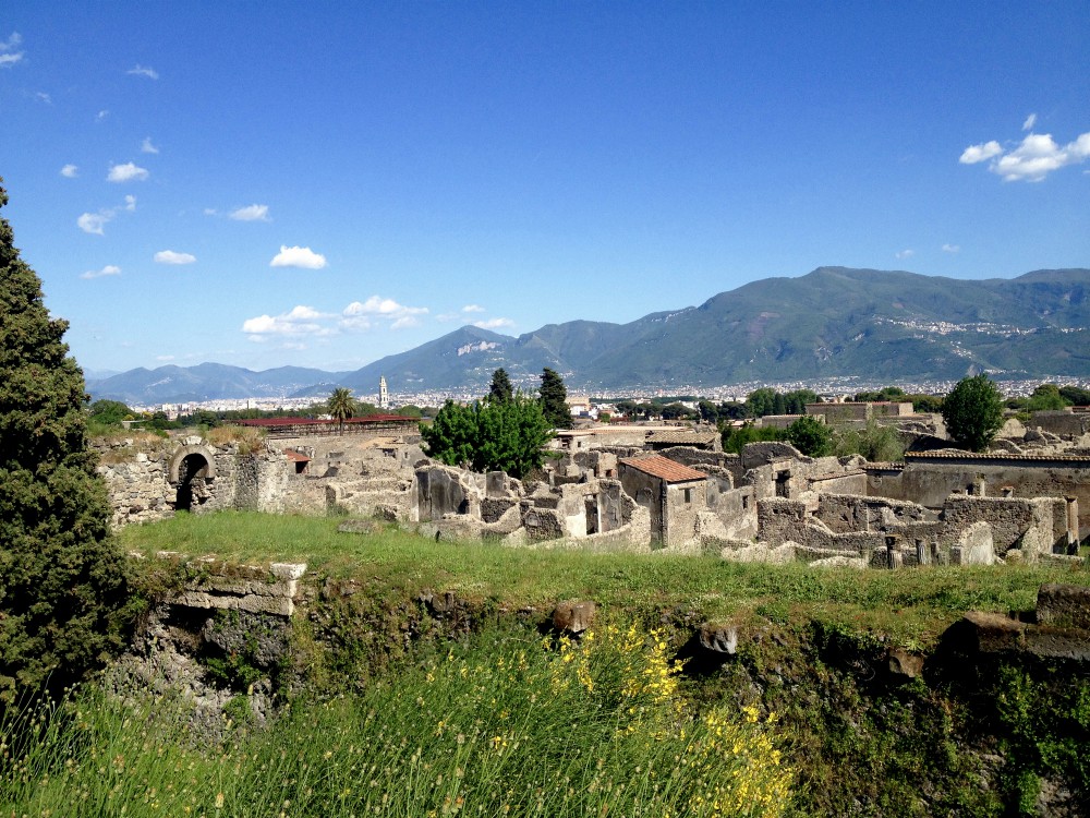 Pompeii is a great place to visit to understand the Roman way of life. Rome has been built up, and while there are preserved sites, it's not as easy to get a feel for ancient Rome. Whereas you have the whole of Pompeii that you can walk through — the gutters and speed bumps in the streets, the beware dog signs, the artisan workshops, the villas of the wealthy — that offer a glimpse into how life worked.