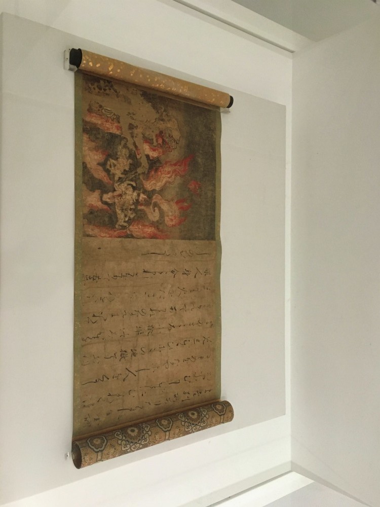 First, a bit on Japanese scroll painting. This tradition rose to its peak during Edo period Japan, scrolls and screens often reflecting religious motifs, allegories, folktales, and historical accounts. Similar to Chinese prints, ownership of these paintings was tracked to the sides of the main scene, often in the corners, with red characters distinctly marking the change of hands, a tradition Murakami also adds to some of his works.